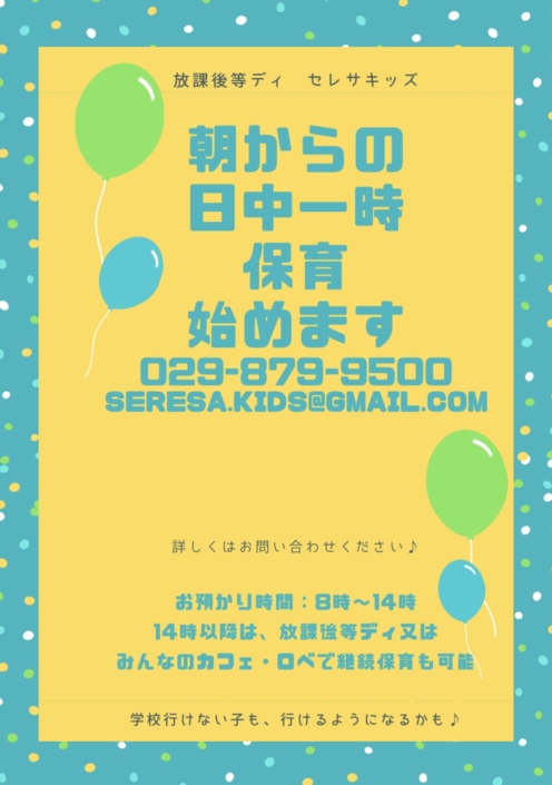 放課後等デイセレサキッズでは、午後からのお預かりと同時に、不登校支援の一環として、朝からのお預かりを平日も行っています。