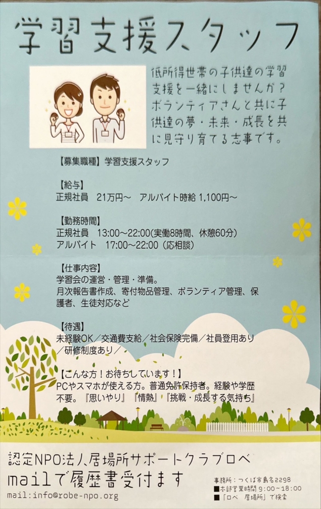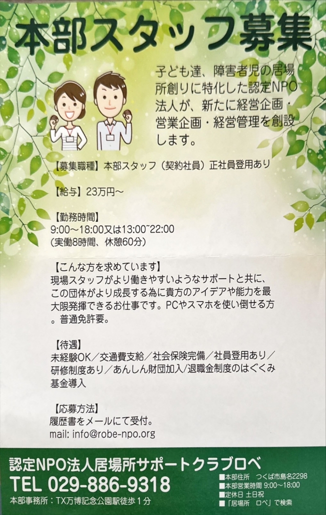 【イベントのボランティア募集】 いつもありがとうございます! ロベでは不登校支援として、『つくば多様な学びネットワーク』という任意団体に所属しているのですが、 … -