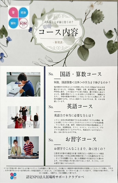 学校によっては出席扱いにもなりますので、学校に行けない、でもフリースクールにも馴染めない、料金が…等お困りが有りましたらご相談ください。