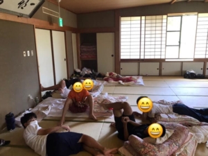 休むチームはカルタで盛り上がったあとは、仮眠をとって休息。