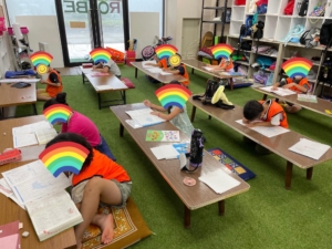 そして芝生に変えて1ヶ月が経ちますが、子ども達の学習への集中力も変わってきている様子です。