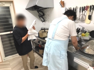 夕飯作りでは、ボランティアの方やグループホームの方、子どもも一緒に作ったり、盛り付けたり、片付けたりしています。