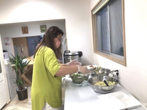 夕飯作りでは、ボランティアの方やグループホームの方、子どもも一緒に作ったり、盛り付けたり、片付けたりしています。