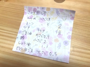 おうちでちゃーんと調味料の分量をメモしてきてくれて、その通りに作ったので味付けは一度で決まりました