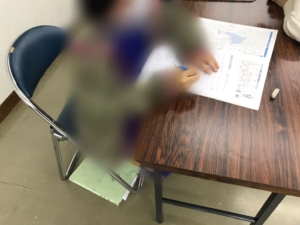 小学生クラスでは、夕飯のあと、後半の勉強をはじめるタイミングで毎回計算テストを行っています。これで休憩時間との区切りをつけています。