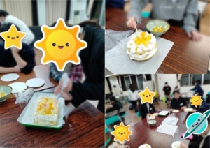 子どもたちもいつもと違う表情を見せてくれて、楽しい雰囲気でそれぞれ素敵なケーキが出来上がり、皆で美味しくいただきました。