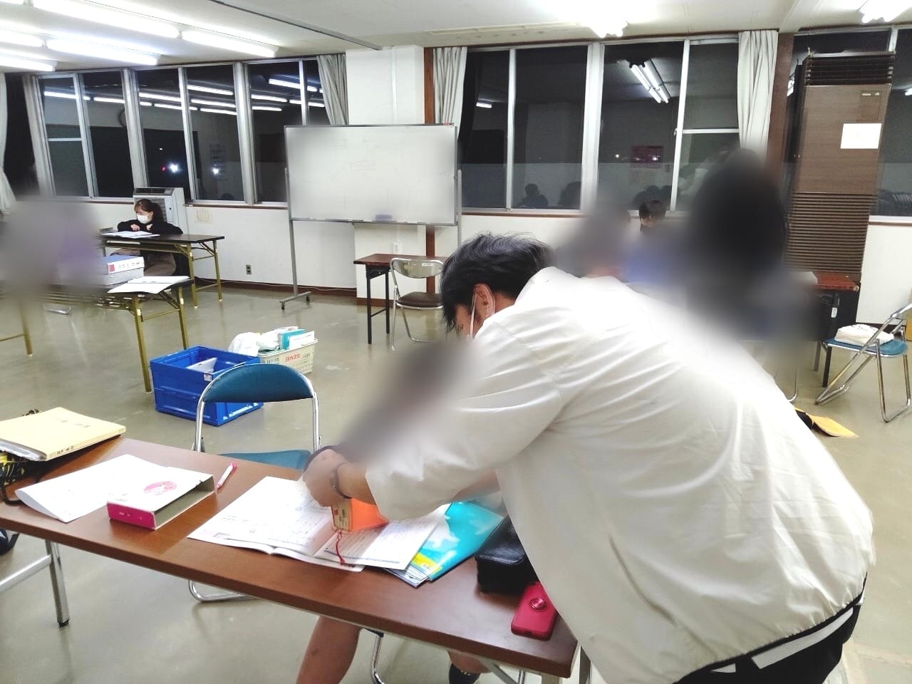 11/29谷田部教室の小学生クラスは、机を壁に向けて並べ、子供たちは壁に向かって座り学習してもらいました。