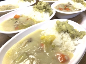 夕飯は谷田部組様がシチューを作ってくださいました。