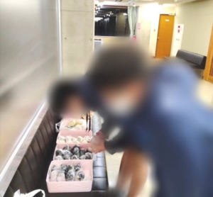 この日の夕飯は、ボランティアさんが端正込めて作って下さったおにぎりがたくさん♥️