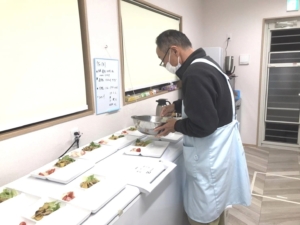みんなのカフェ・ロベで男性スタッフもキッチンに立ち、お料理しております。