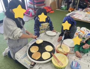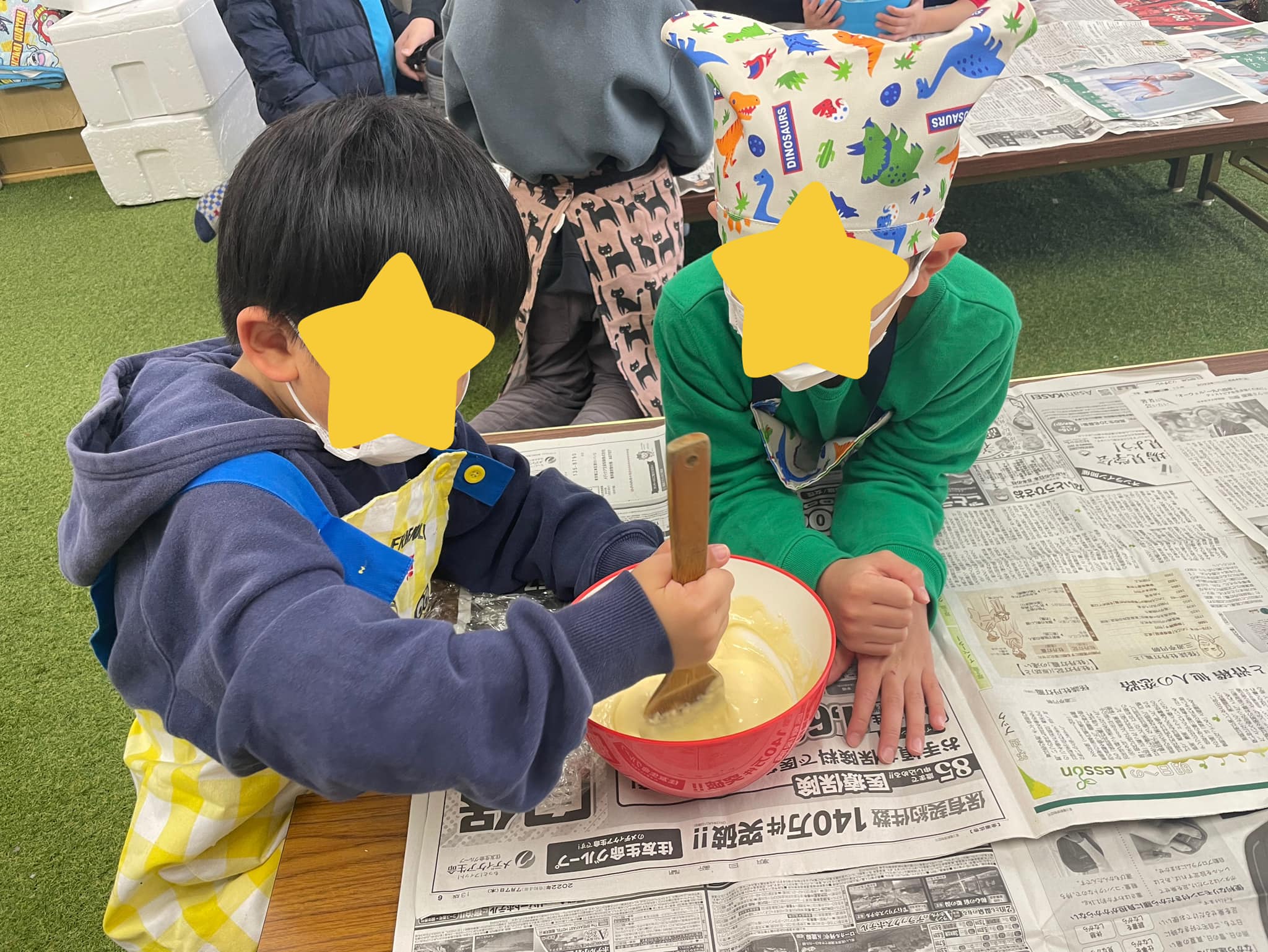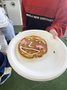生地が溢れてしまったり、パンケーキが焦げてしまったりハプニングが発生しましたが、失敗したときの解決方法も子どもたちに考えさせながら進めました。