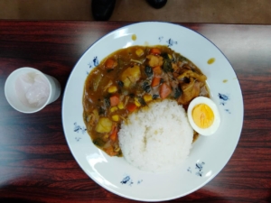お楽しみの晩御飯は皆んな大好きカレーライスとブルーベリーヨーグルト。