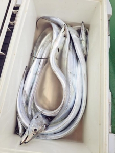 夕飯のメインメニューはカフェ・ロベスタッフが釣ってきた太刀魚のムニエル