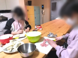 チョコバナナ春巻きとマシュマロのいちごチョコがけ、女の子たちは楽しそうに作っていました
