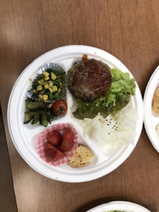 お楽しみの夕食はSDG様のご提供のハンバーグです。大変美味しくいただきました。