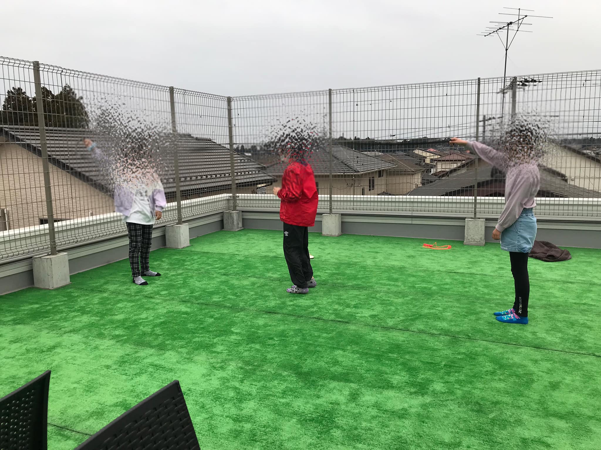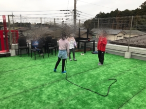 公園に遊びに行った後、屋上でみんなでなわとびをしました。