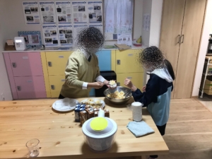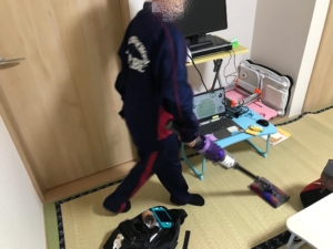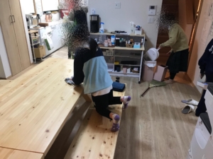 たっぷり遊んだ後はいつものお手伝い。盛り付けから配膳、食後の片付け、清掃などしっかりとやってくれました。