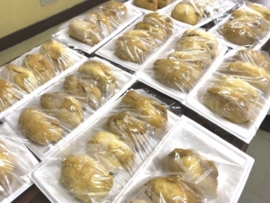 フードバンク様よりご支援いただきました親子丼とポップコーンを配布させていただきました。ありがとうございます。