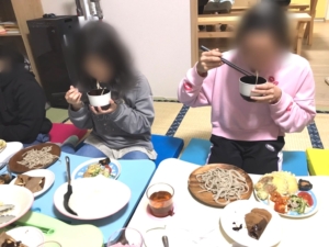 春休み企画!蕎麦打ち体験をカフェ・ロベで行いました