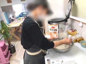 焼いた生地にチョコ、バナナ、ナッツで子供達がトッピングしてくれました!