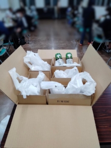 挨拶をして、帰りにはつくば市から寄付をいただいたドレッシングを配布させていただきました。