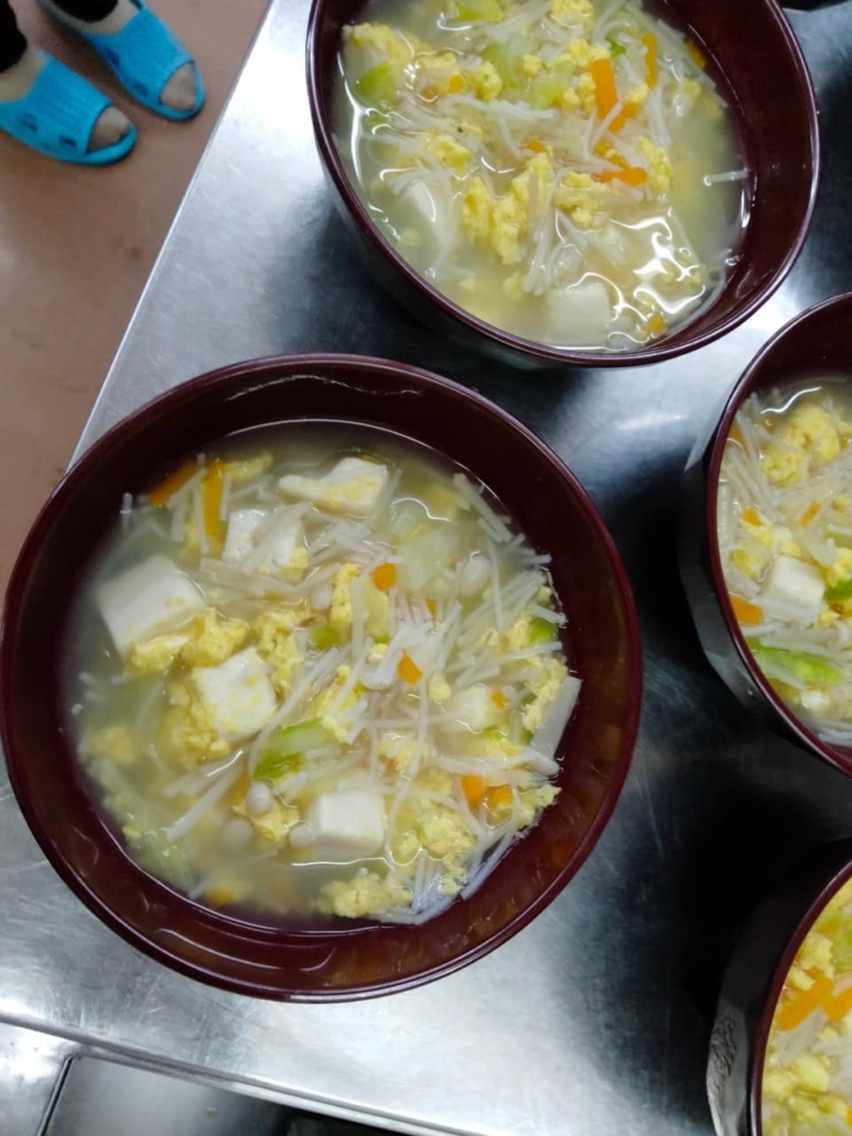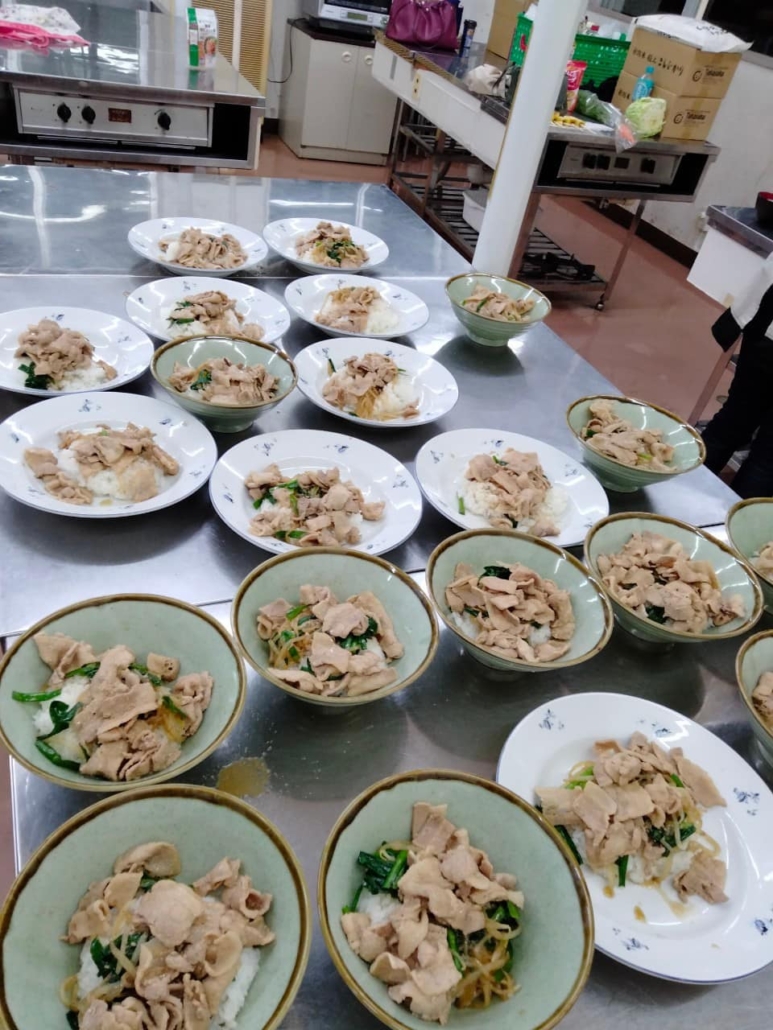 お楽しみのご飯はスマイル食堂様ご提供の肉ニラご飯とスープ!