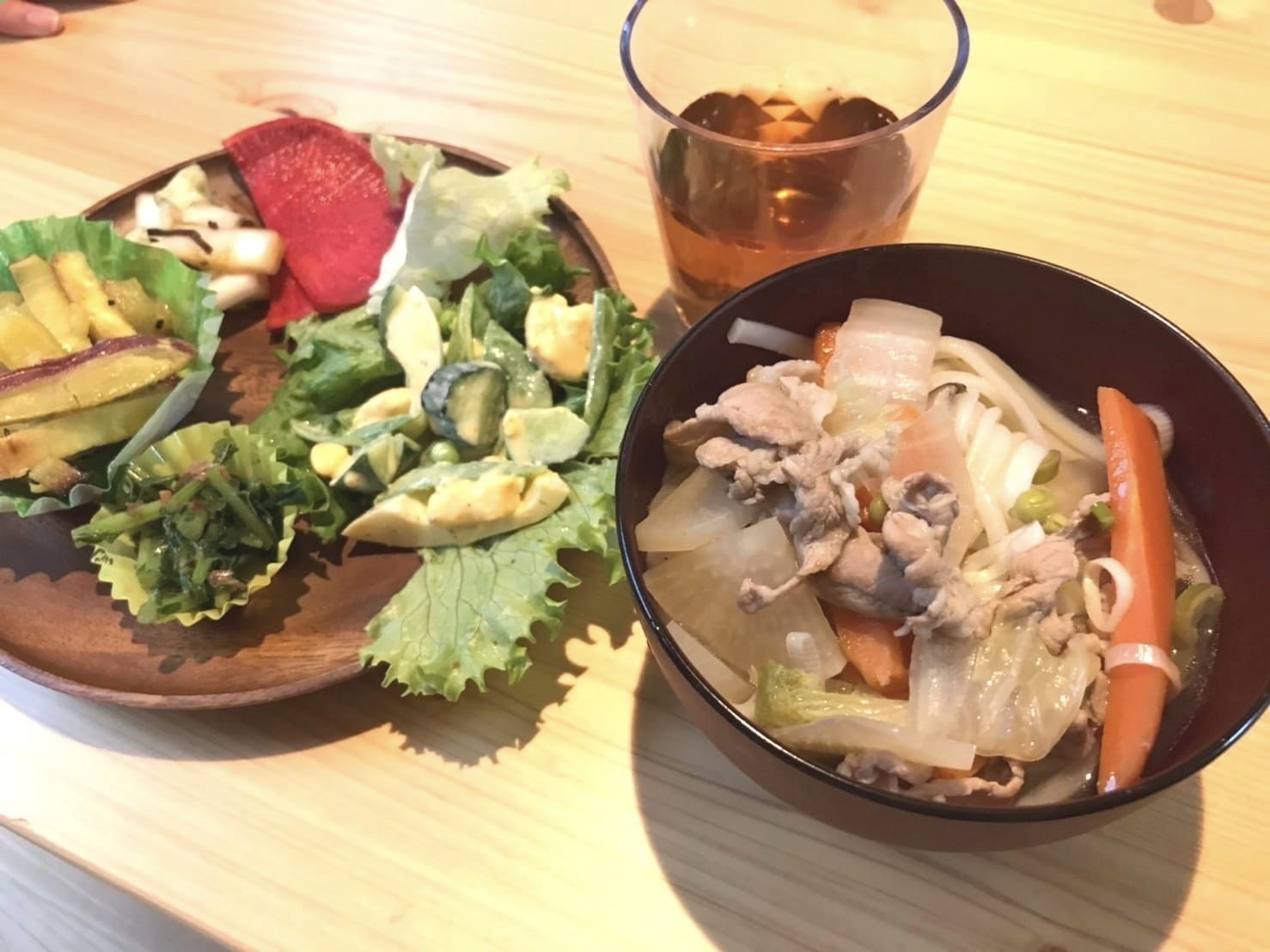 カフェ・ロベの夕飯はいつもご飯が主食ですが、この日は珍しく肉うどん