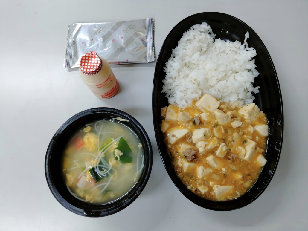 子ども食堂のご提供があり、美味しい麻婆豆腐とスープなどを頂きました。