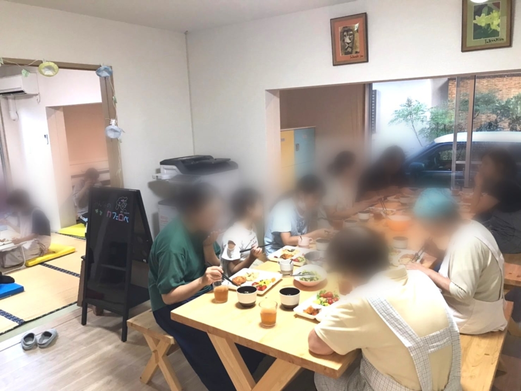 保護者様、近所のグループホームの方々の、子ども食堂に興味がある方など、子供も大人もいろんな方々がお越しくださり、交流しています