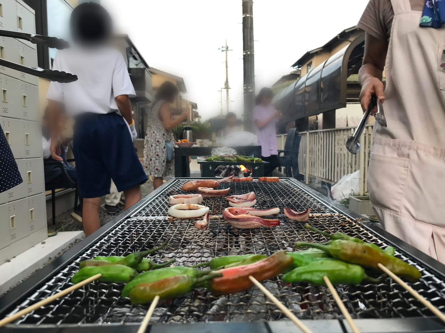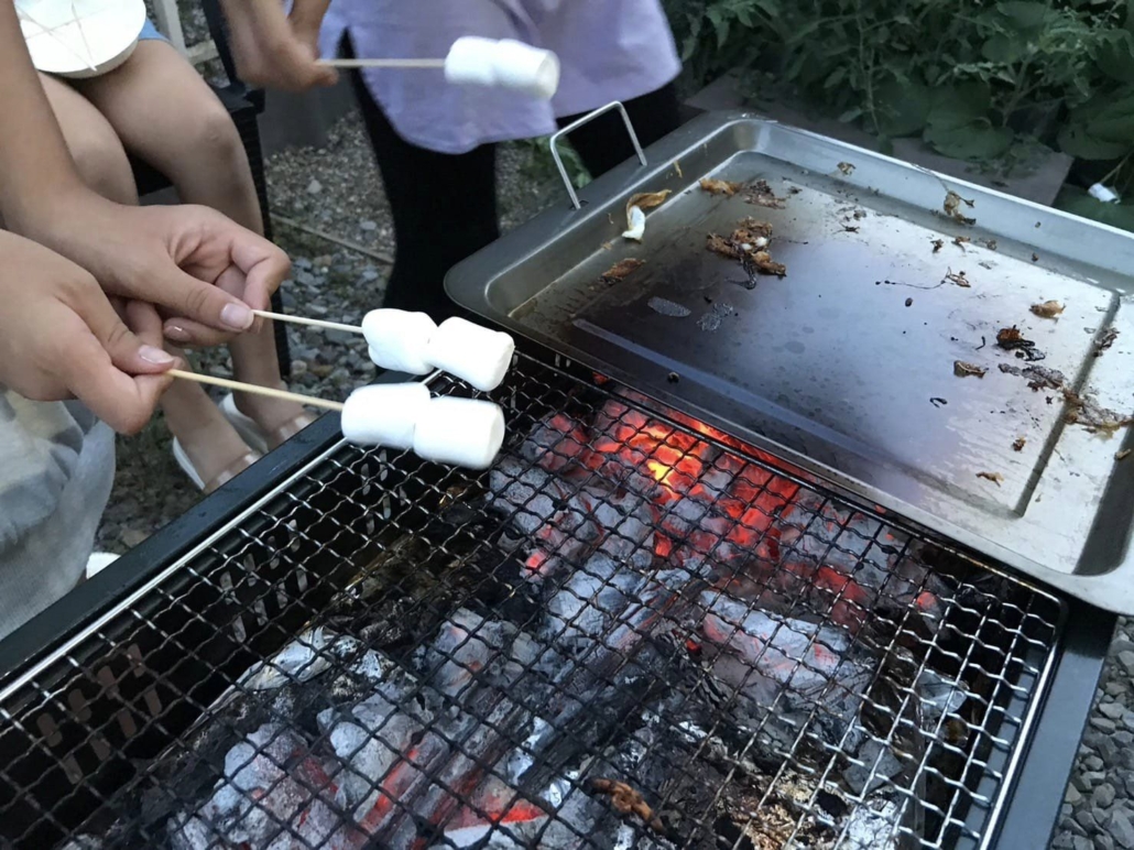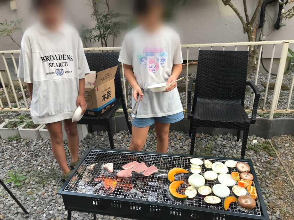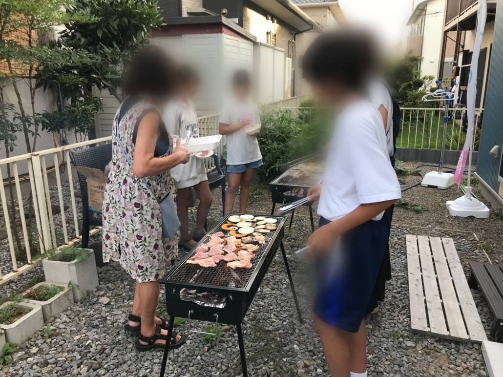 椅子、テーブルを外に並べたり、肉や野菜を焼いたり、子どもたちも協力してBBQを楽しめました。