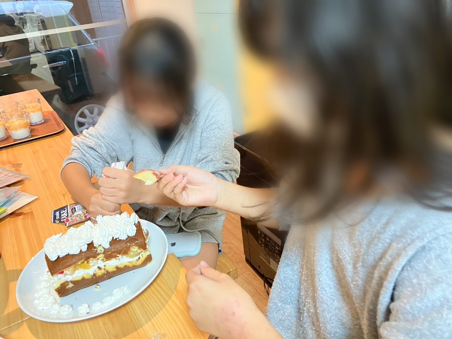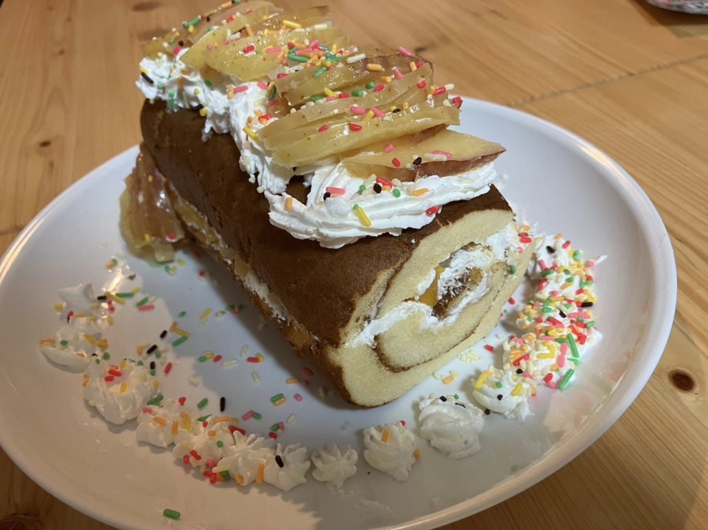 ロールケーキのデコレーション、子どもたちが可愛く仕上げてくれました