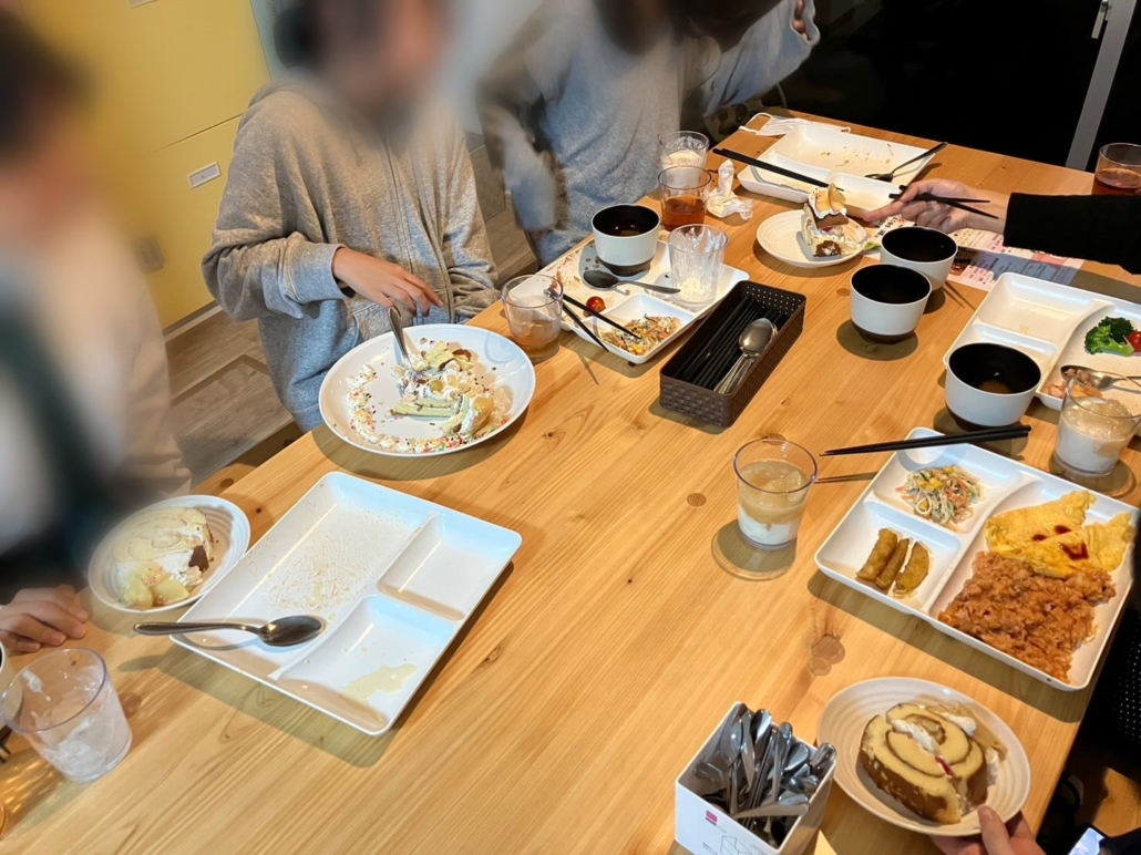 食事のあと、別腹といわんばかりにケーキを頬張る子どもたち。喜ぶ姿がみれて大人が嬉しくなります