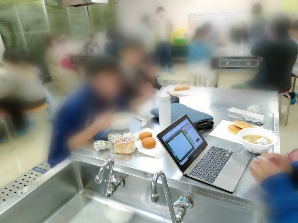 この日の夕飯はマナーズ様ご提供の豚汁、おにぎり、パンです。気温が下がってきたので、豚汁人気です。