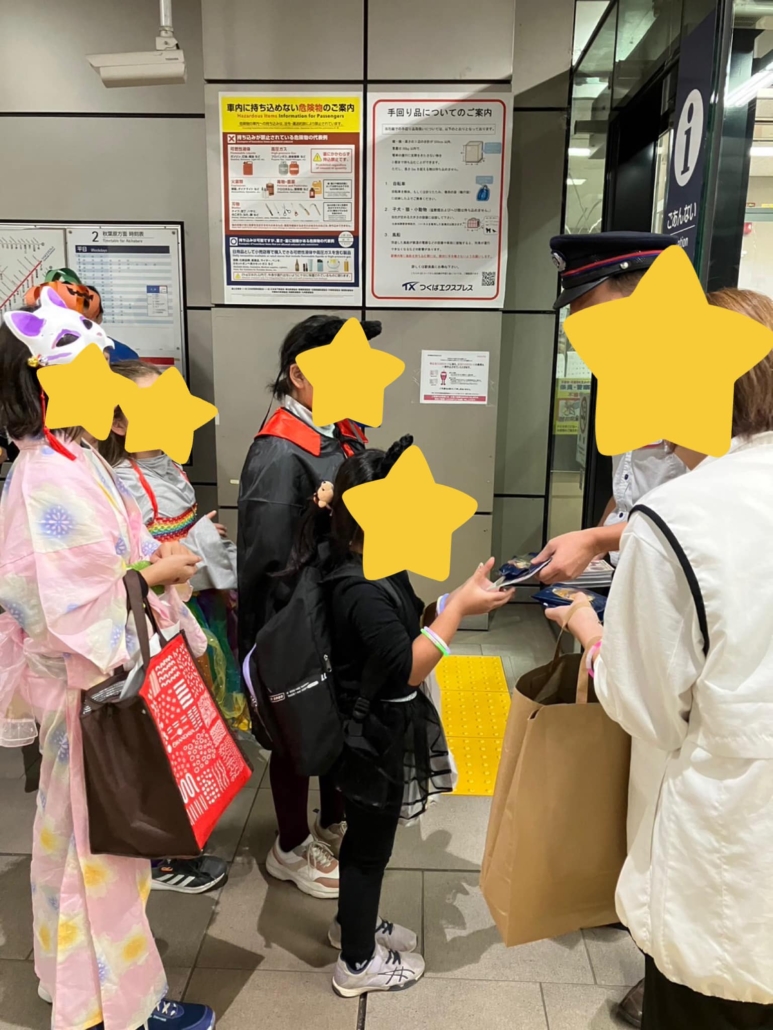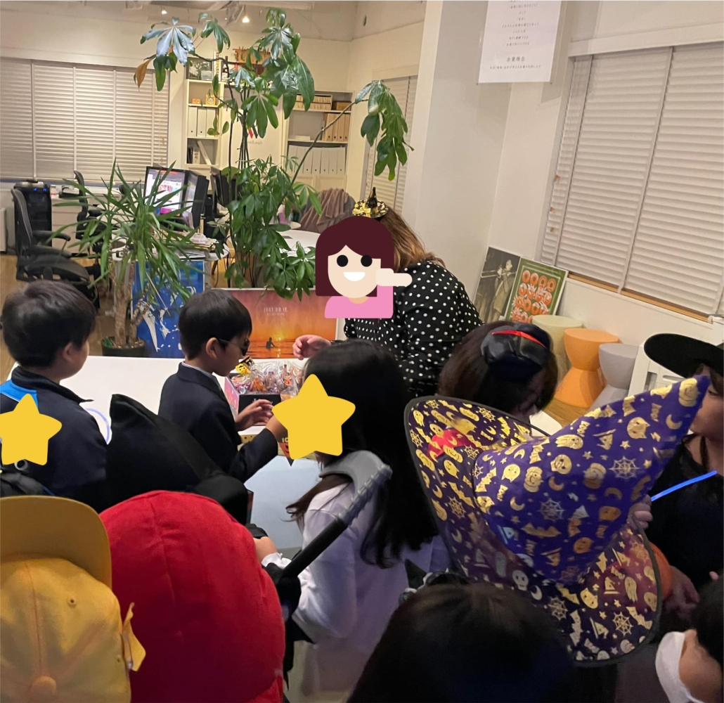 1人1人が素敵な仮装をし、【トリックオアトリート】と大きな声で歩きお菓子をもらいました