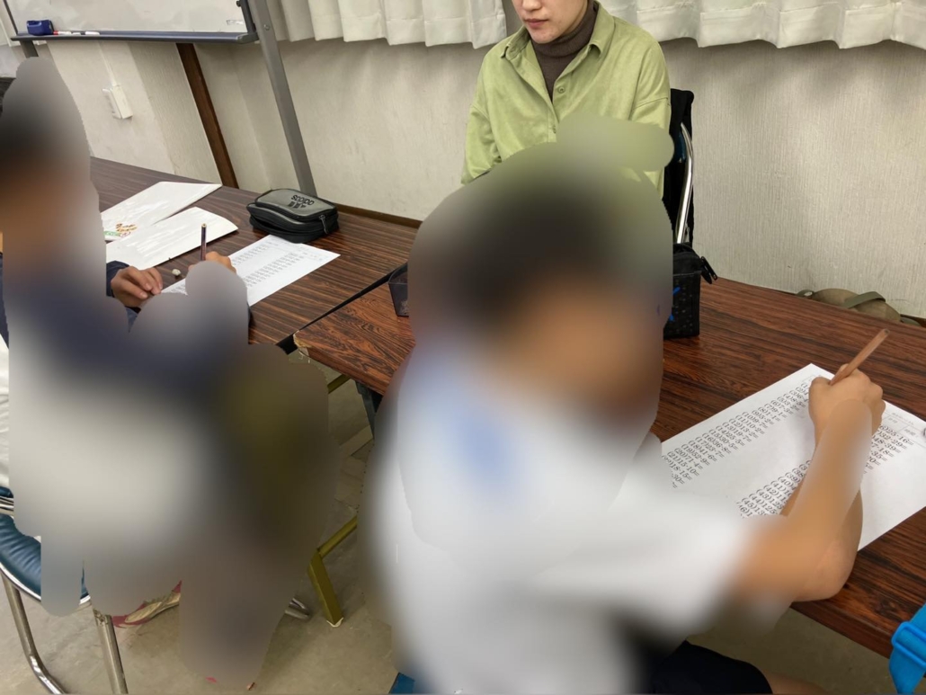 食事の休憩時間は子どもたちは元気にやんちゃに過ごしていますが、後半の学習スタートに計算テストを始めると、気持ちを切り替え一生懸命取り組んでいます。感心です。