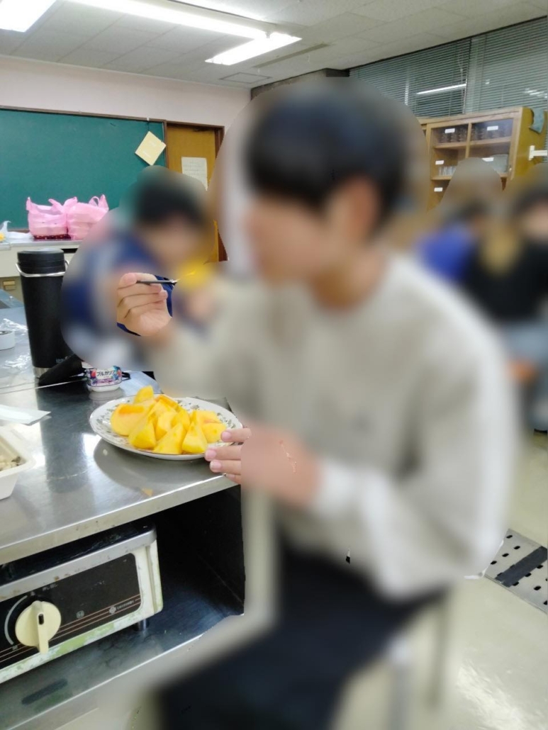 そしてご寄付いただきました清水農園さどうもん様の柿も子どもたちに食べてもらいました。美味しい夕飯に子どもの顔が綻びます😊