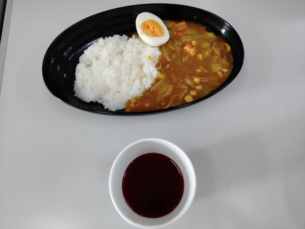 この日も子ども食堂のご提供がありました。甘口のカレーライスにゆで卵が添えられたおいしい食事を作って頂きました。野菜ジュースも添えられていました。いつもありがとうございます。