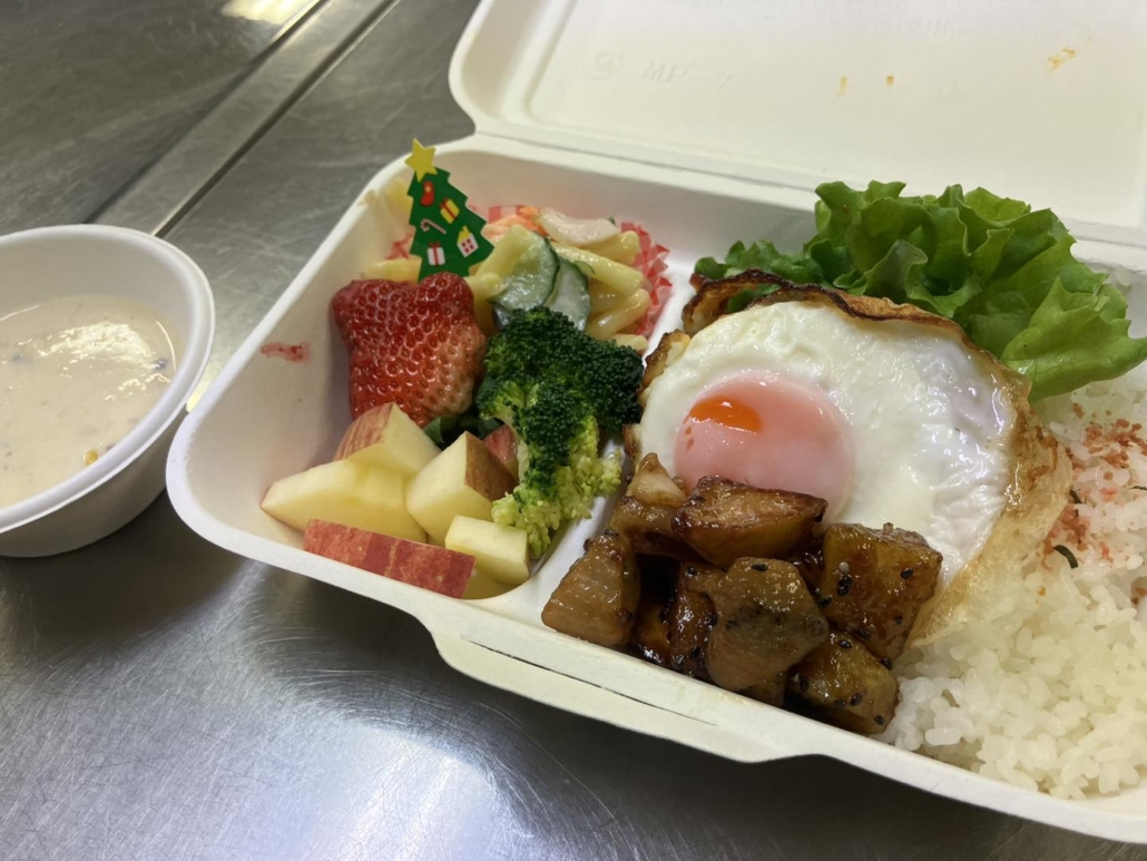 そしてこの日は、Gチェリー様より子どもたちの大好きなハンバーグ弁当とコーンスープをご支援いただきました。ハンバーグも目玉焼きも一つ一つ調理して手間をかけながらお作りいただき、美味しい夕飯のご提供ありがとうございました