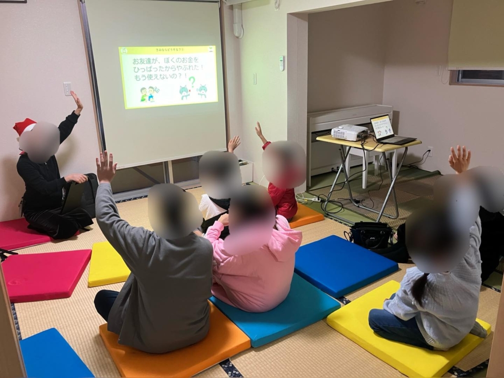 カフェ・ロベは早々に20日にクリスマス会を催し、25日はマネー講師の小峯先生にマネー講座を開催していただきました。テーマは「お金のトラブルから身を守ろう」クイズ形式で子どもたちは楽しく参加できたようです。