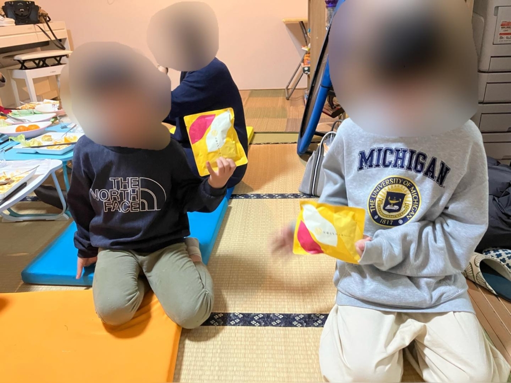 つくば子ども支援ネット様経由でカルビーかいつかスイートポテト株式会社より天使のグラッセをいただき、カフェ・ロベの子どもたちに配布させていただきました。ご支援ありがとうございました😊