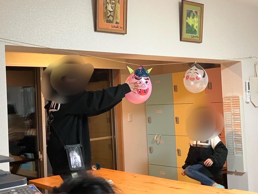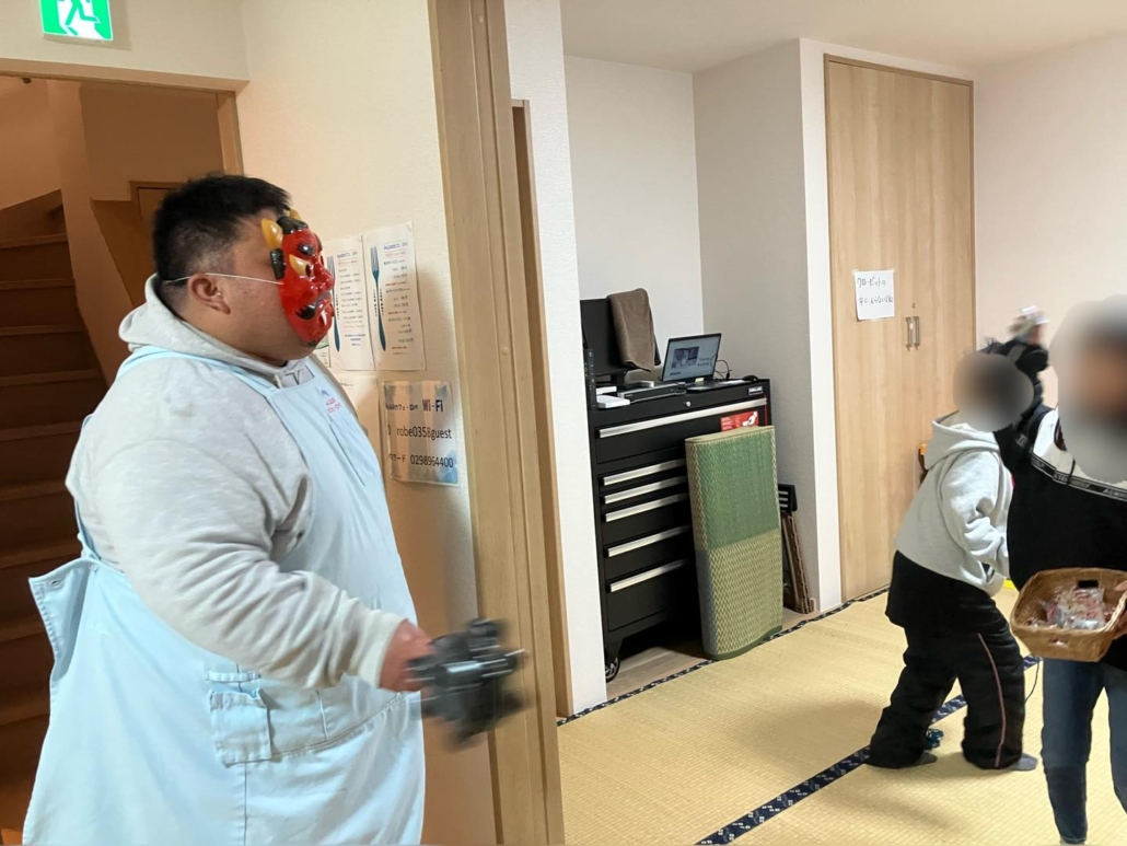 やる気満々の子どもたちは、大きな鬼をあっという間に玄関から追い出しました。
