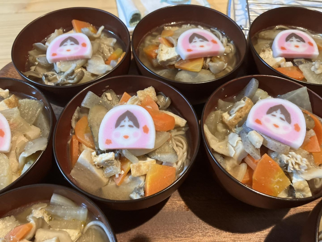恵方巻きは関西の文化ですが、節分には昔はお蕎麦をたべる風習があったようです。これを年越し蕎麦といったようです。ということで、カフェ・ロベでは、恵方巻きの他に、けんちん蕎麦も食べました。
