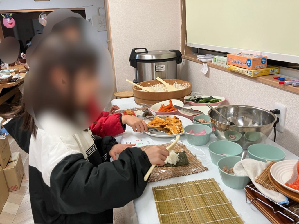自分で作った恵方巻きは美味しかったようで、子どもたちは皆おかわりでもう一つ恵方巻きを作って食べていました。大人よりたくさん食べていてびっくりです