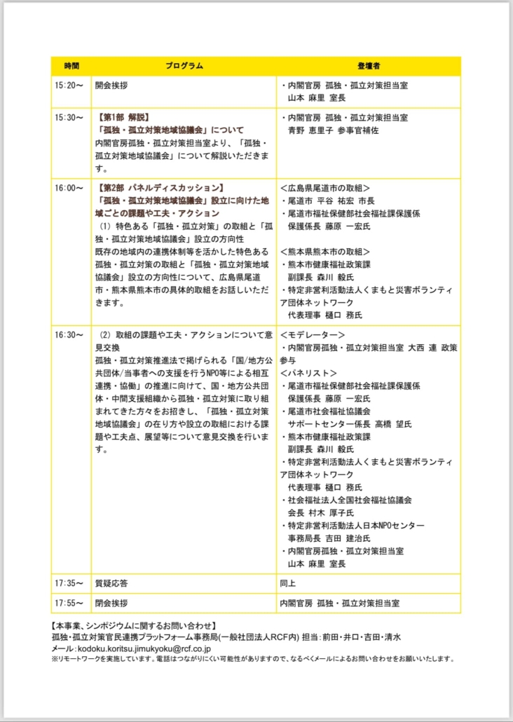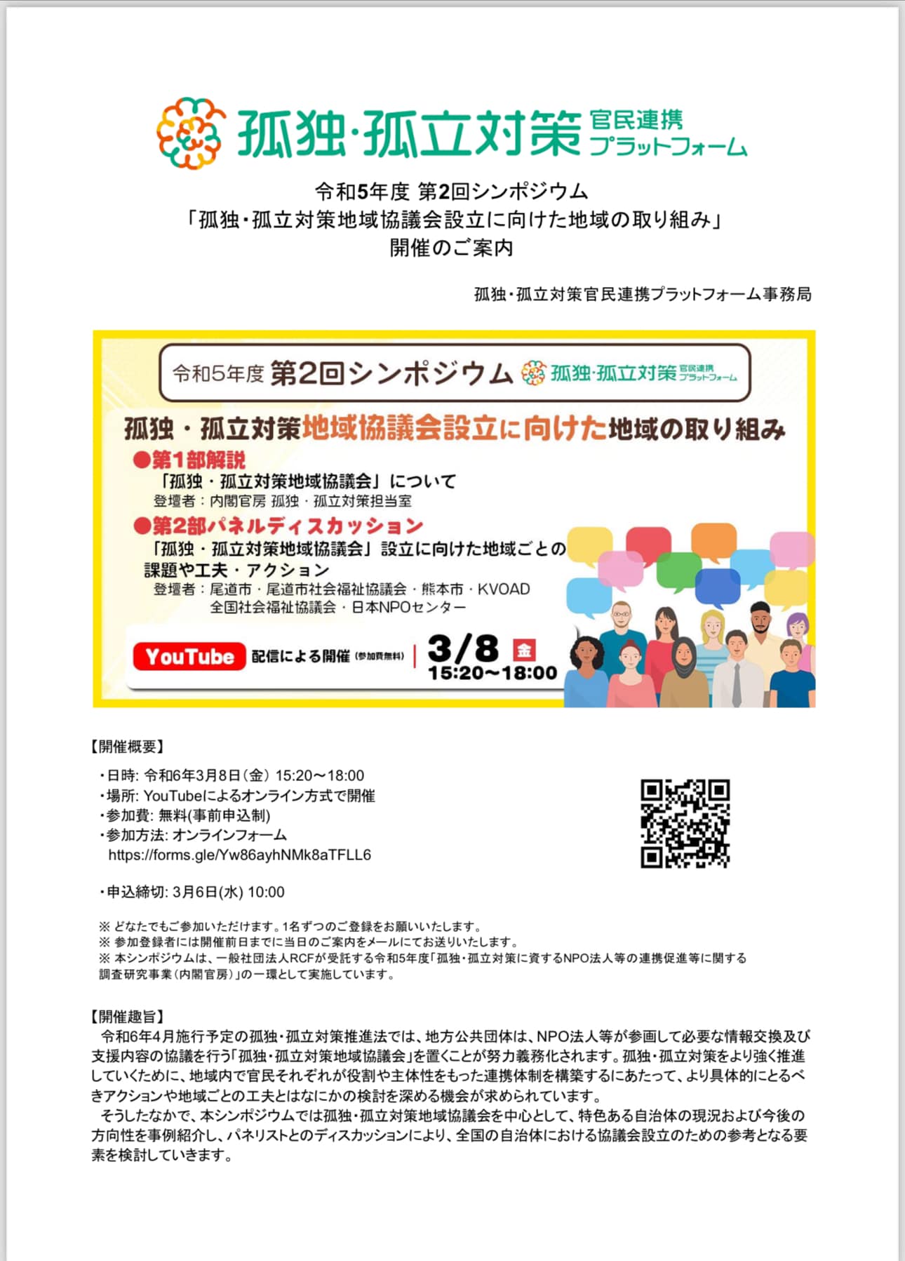 このたび、孤独・孤立対策官民連携プラットフォーム 令和5年度第2回シンポジウム