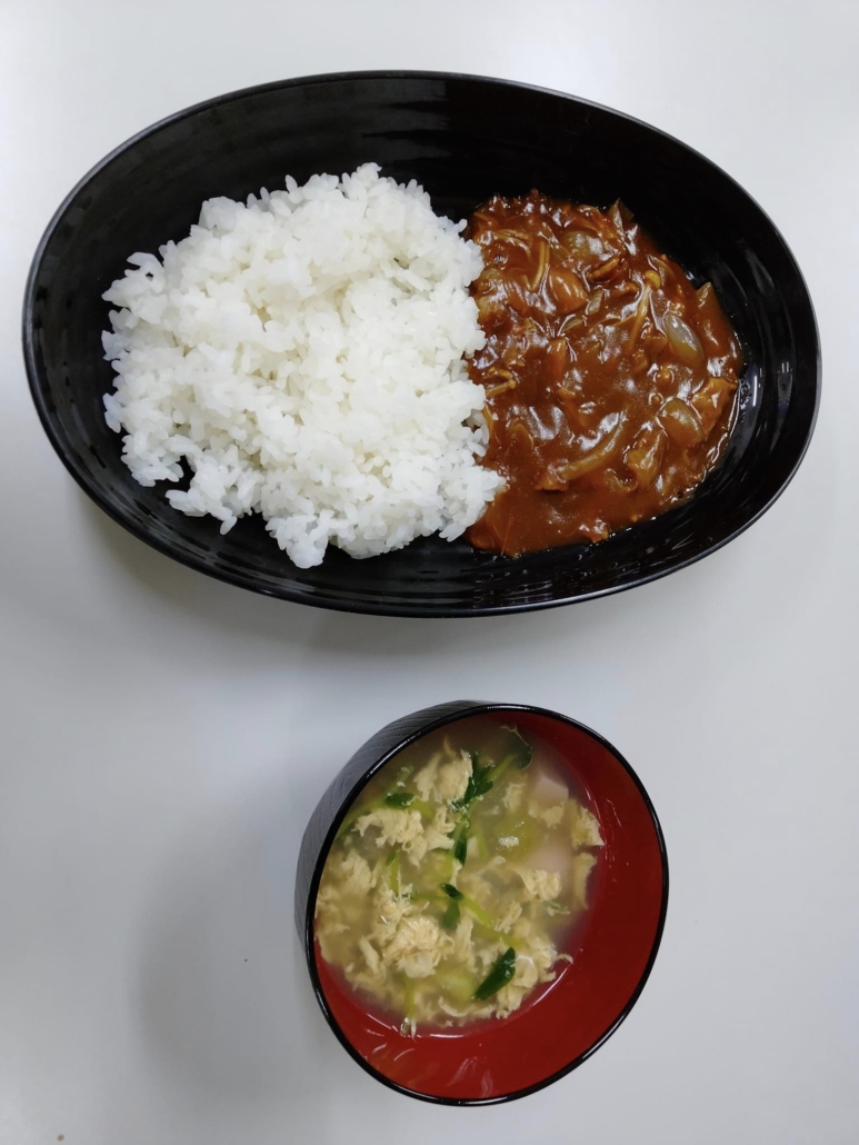 この日は子ども食堂の食事のご提供がありました。ハヤシライスと卵スープを美味しく頂きました。いつもありがとうございます。