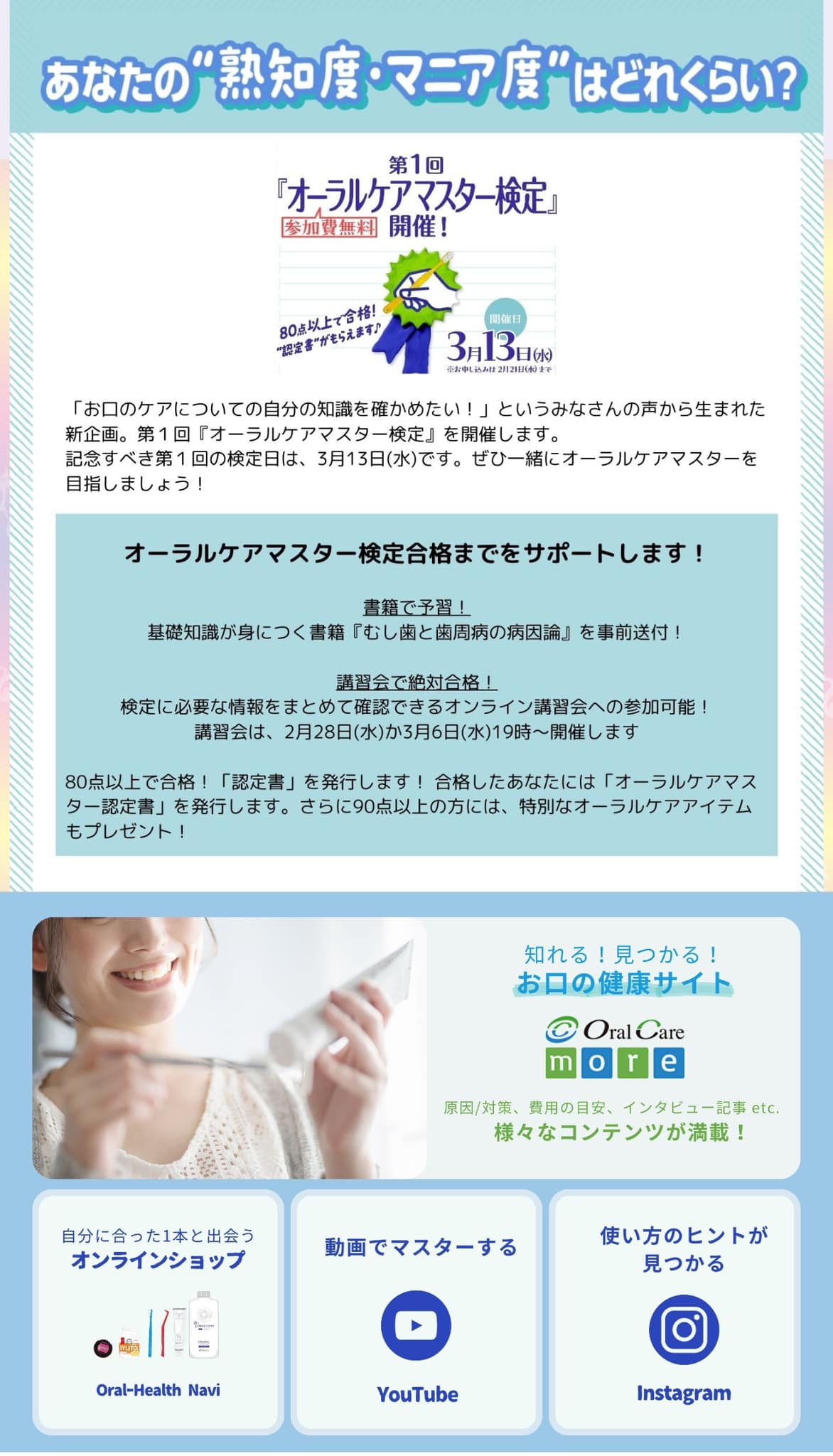 そのオーラルケア様が、検定を行うそうです!