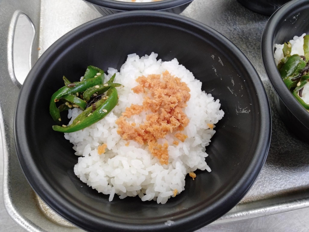 この日も子ども食堂の食事のご提供があり、ほうれん草が添えられた温かいクリームシチューとさけフレークご飯をおいしく頂きました。