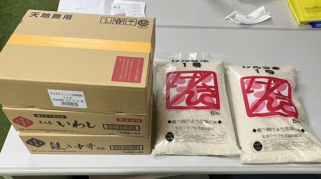 つくば生活ささえあいクラブ様より、お米と缶詰の寄付をいただきました。