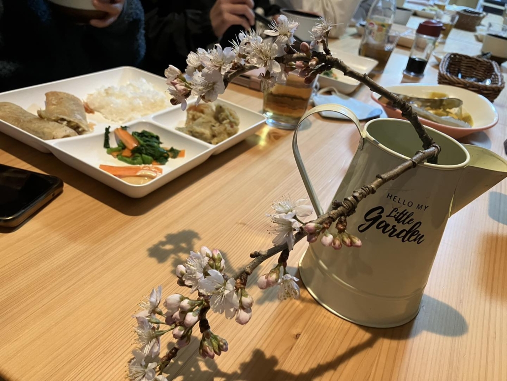 あたたかくなってきて、桜がちらちら咲き始めています。カフェ・ロベでも春を感じる花を飾って華やかです。