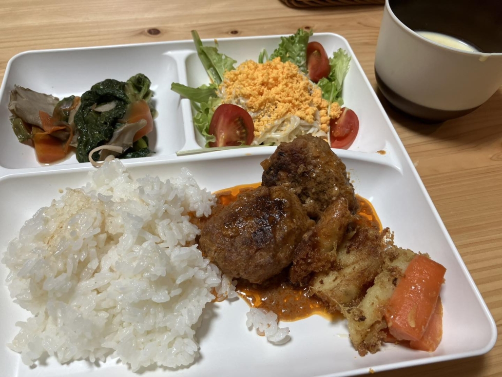 食卓にはサラダに卵の黄身を散らしてミモザサラダにしました。